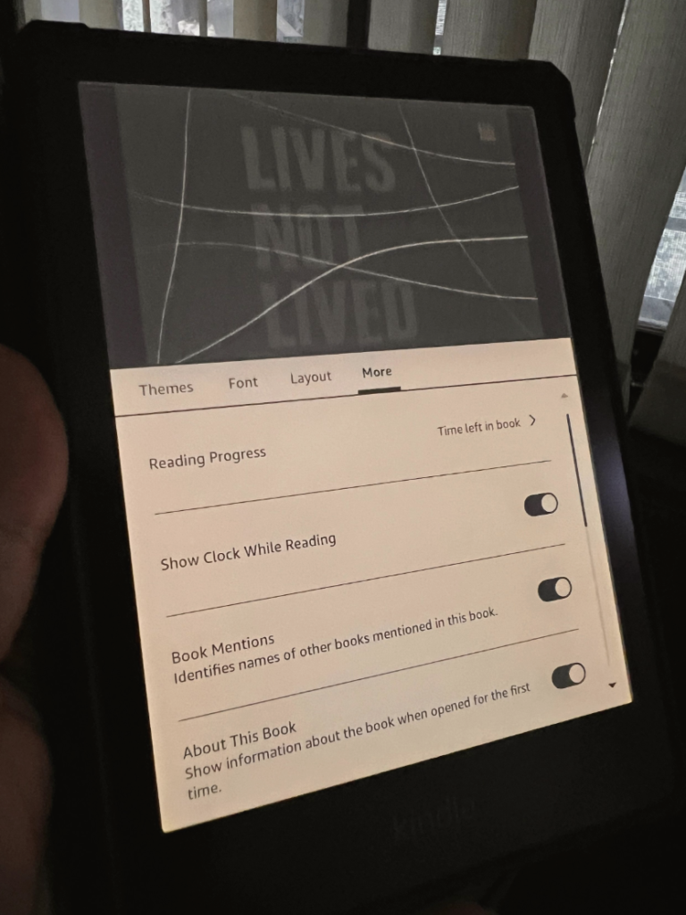 I went to my Kindle Library and started going through the books in my reading list to decide what to read next. While scrolling, I accidentally entered the ‘settings’ section of the Kindle. These e-book readers are pretty simple devices with not too many settings to play with. I had never felt the need to make any tweaks to the settings since I got the device. But now I had stumbled upon a setting which said ‘Show Clock While Reading’. It let me toggle between showing or not showing the current time on the page I would be reading.