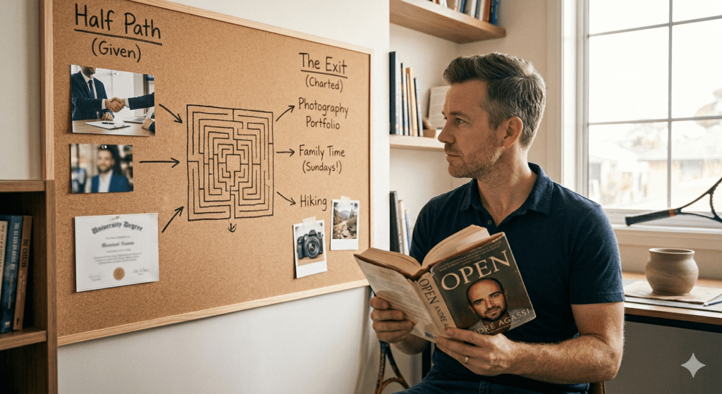 Agassi followed the “half path” of hard work and extreme discipline. He achieved the security and stability of becoming world #1. But in his autobiography, he famously revealed that he “hated tennis with a dark and secret passion.” He knew how to “enter” the formation of professional success. But because it was his father’s dream and not his own, he had no “exit” — no sense of who he was outside the court. He was trapped and miserable despite his fame.
